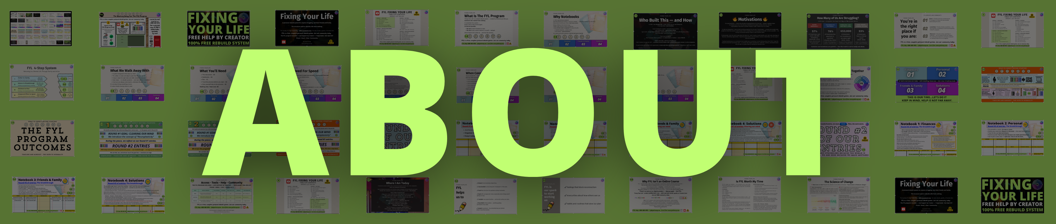 The FYL Community was created as a personal rebuild system for people who need something structured and different. Built for extreme cases, it is a free program for anyone living in unstable conditions, struggling to pay bills, or having difficulty meeting basic needs.