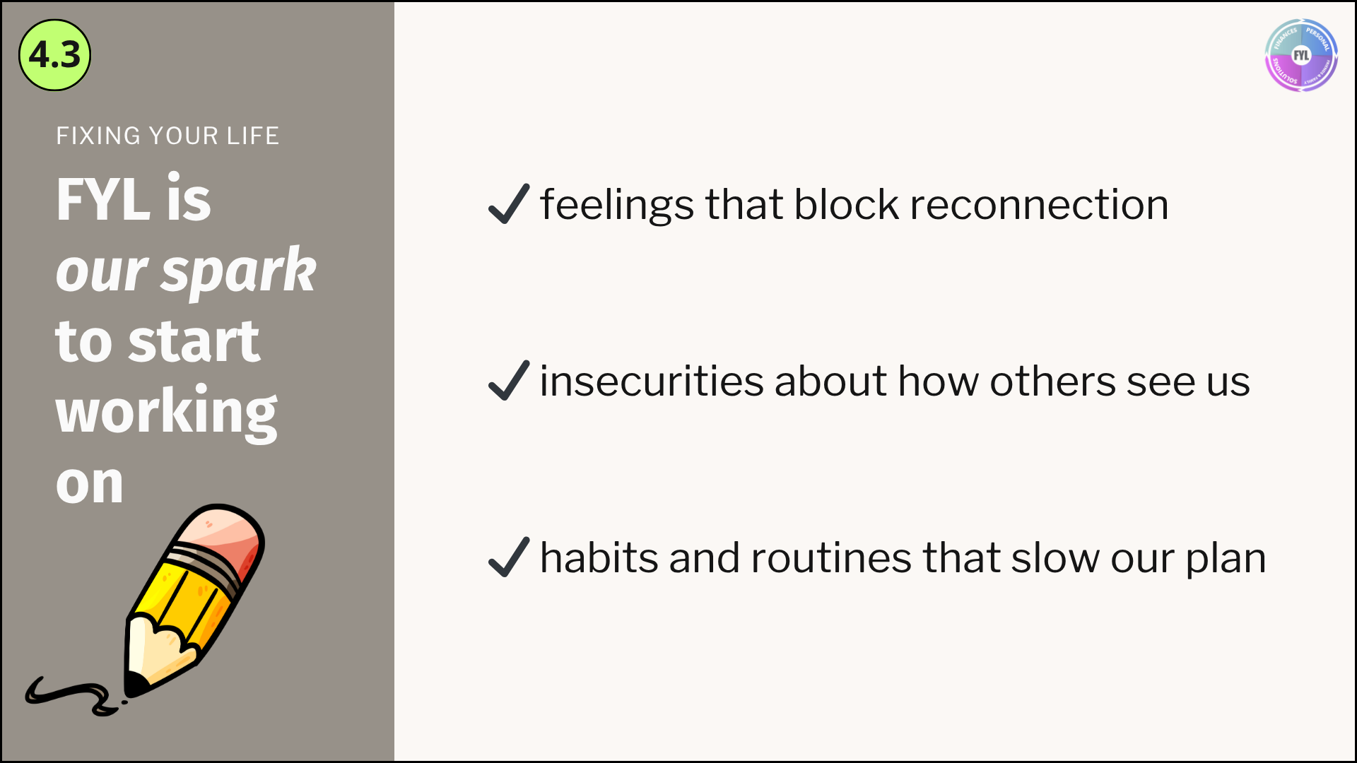 - 4.3 — FYL is our spark to start working on